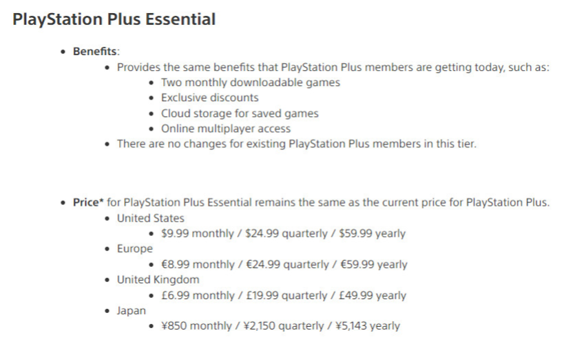 Tier 1: PS Plus Essential
