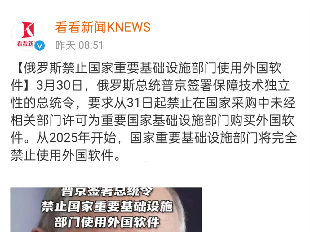 3月30日, 俄罗斯市场的新信息浮现出来, 意味着俄罗斯市场已开始转向独立研发, 截至3月31日,