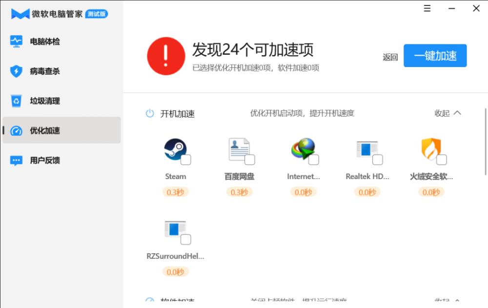 加速运行功能的优化主要涉及加速启动和软件加速,即关闭启动启动和关闭消耗更多系统资源的程序,而对于这些程序的谈论较少。
