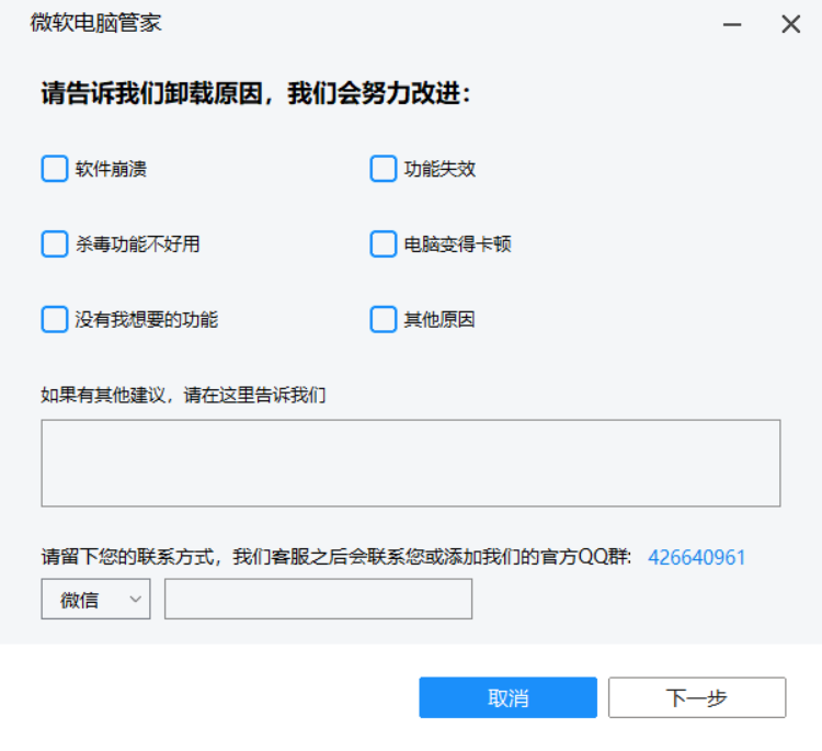 但是,仍然有一个用于填表的界面, 您可以选择下一步而不选中选中。 选择下一步并直接卸载它 。