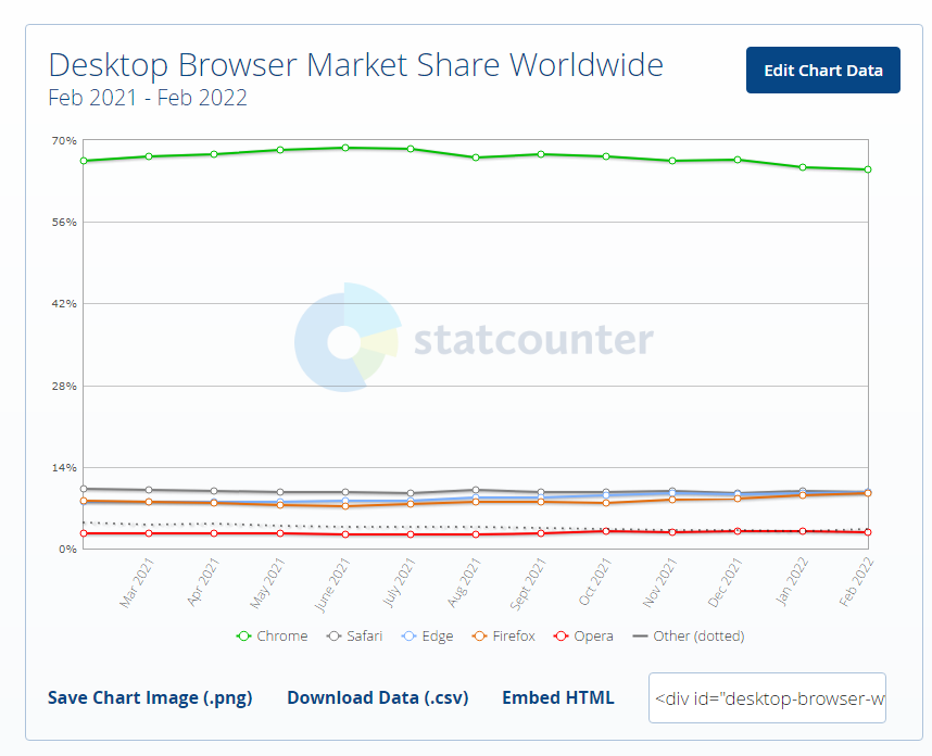 根据最新统计统计,微软边缘超过了Safari,成为2022年3月第二最受欢迎的桌面浏览器。