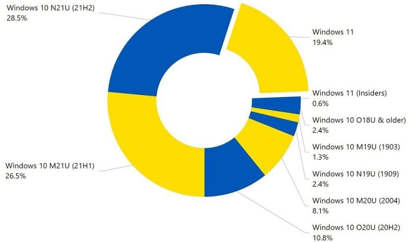 微软 Win11 占比份额呈现停止增长趋势,Win10 版本 21H2 占据第一