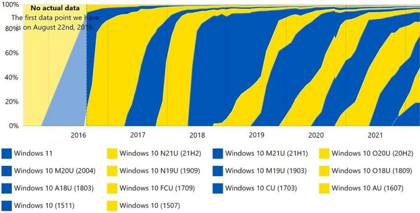 然而,如果同时发布Windows 11和Windows 10 21H2版本,客户仍然以合理快的速度升级为目前版本。