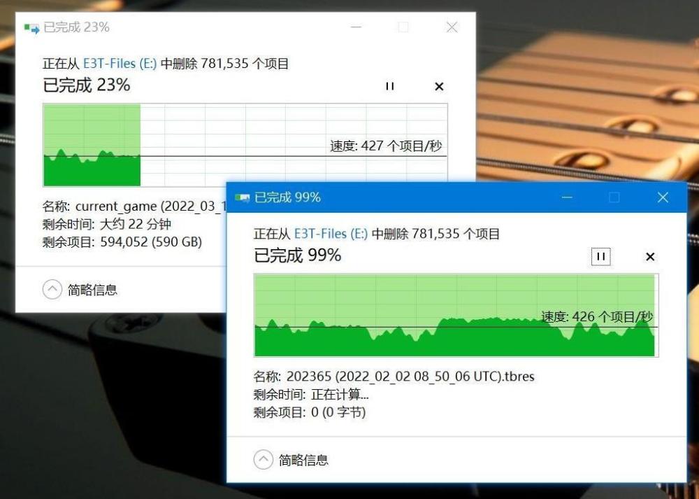 也许里面有很多东西删除 SSDD 硬盘上的 600GB 文件备份需要20分钟。最好删除数百千兆字节的视频数据。不过这不算麻烦,你可以去干别的,几分钟后硬盘驱动器将被解放 数以万计的英磅 占用空间。硬盘容量将大幅减少。