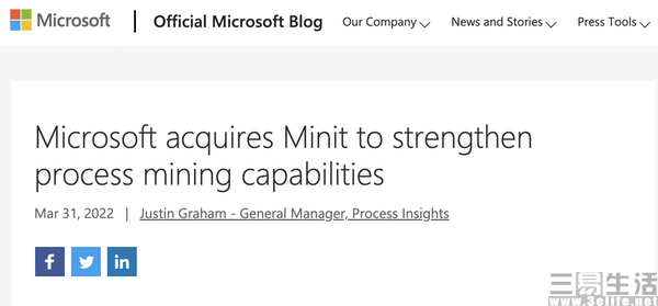 - 2022-04-07 微软收购流程挖掘领导者Minit,增强