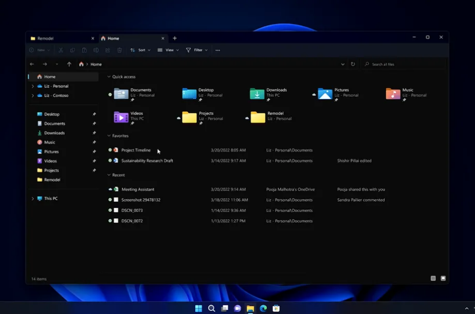 Microsoft 未能在 Windows 11 beta 中包含一个新的文件资源管理器 。尽管如此,该公司在经营过程中披露了其新设计。文件资源管理器的标签与 Microsoft 边缘相似 。用户可以自己制作标签。拖放标签,单击右键时,您现在可以选择一个标签或窗口。