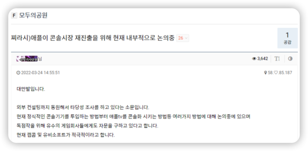 根据报告,苹果公司正在研究通过外部协商进入主机行业的可行性,并正在考虑若干备选办法。