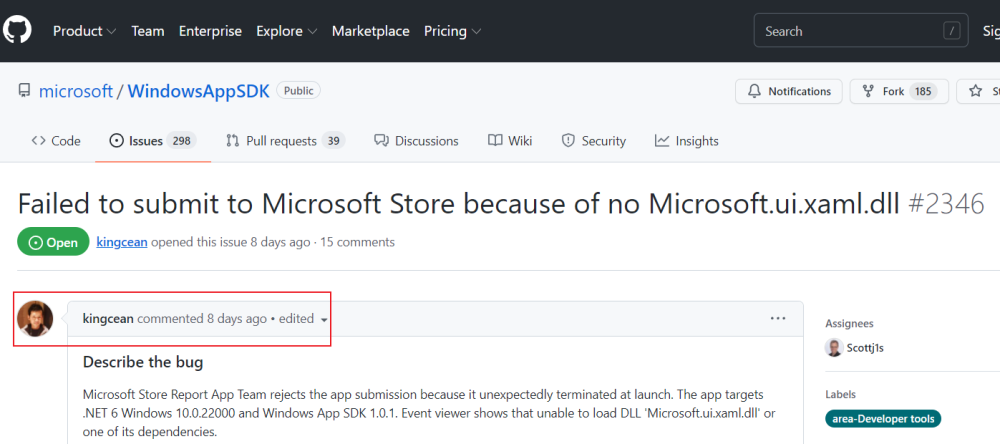 GitHub网站有一个Windows AppSDK仓库。用户 KKingcean 在“ 问题” 中开始对话 。在向微软仓库提交 Achilles 预览后,发生了一个问题。这是我这辈子第一次见到一位女士以获得解决方法。