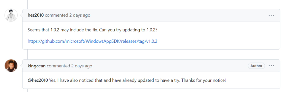 最终,用户 Kingcean 似乎通过更新Windows AppSDK 版本解决了这个问题。