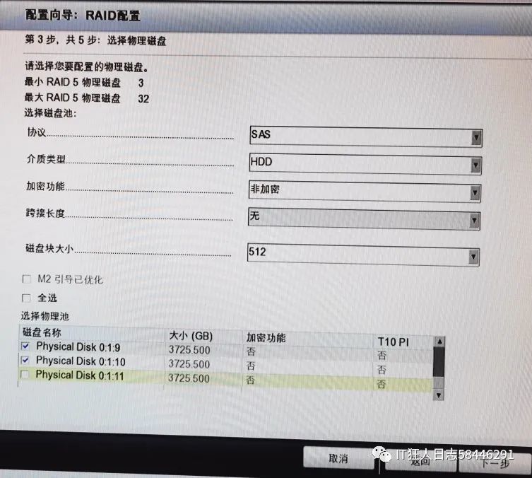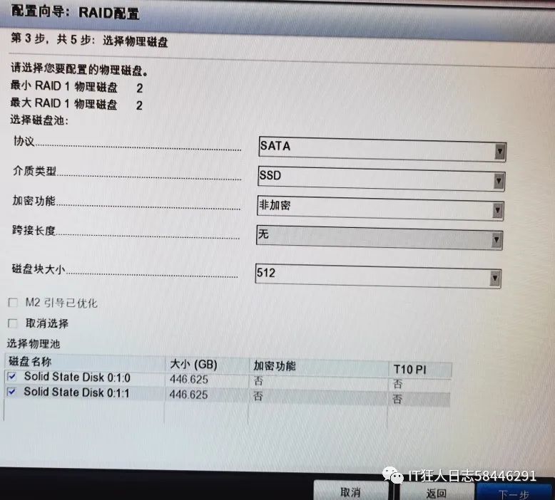在前几个阶段完成后,对RAID1进行了配置,下一步是配置RAID5+热磁盘。