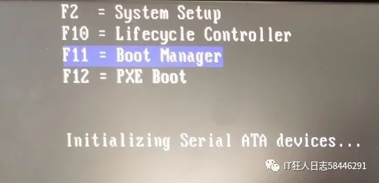 1. 设置RAID,重新启动服务器,按 F11,启动启动管理。
