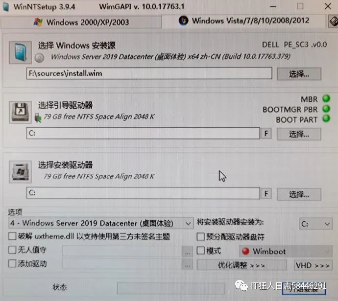 8. 一旦两个固态硬盘被分割成符合逻辑的磁盘,将启动WinNTSetup,并安装Windows服务器2019,如下图所示:(目前,由10个SAS硬盘组成的额外逻辑磁盘不会被分割)