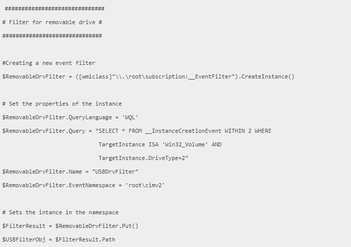 在下面的例子中,我们将使用PowerShell来构建每个组件,当USB设备连接到时,永久事件将探测到一个USB设备,将可执行文件复制到该设备,并设置自动运行。I-I-I-I-I-I-I-I-I-I-I-I-I-I-I-I-I-I-I-I-I-I-I-I-I-I-I-I-I-I-I-I-I-I-I-I-I-I-I-I-I-I-I-I-I-I-I-I-I-I-I-I-I-I-I-I-I-I-I-I-I-I-I-I-I-I-I-I-I-I-I-I-I-I-I-I-I-I-I-I-I-I-I-I-I-I-I-I-I-I-I-I-I-I-I-I