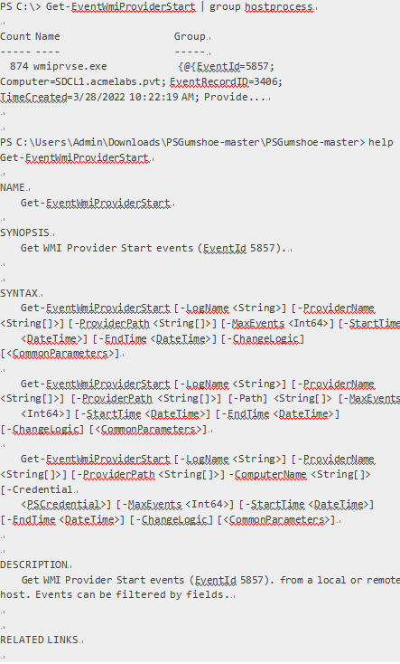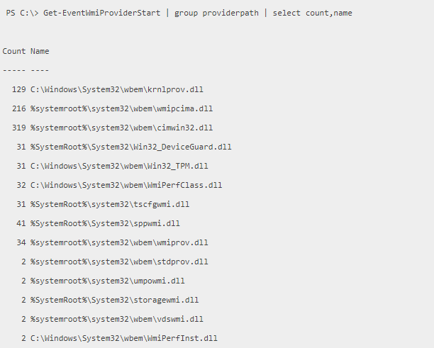 为查询此事件, PsGumshoe 提供了 Get- EventWmiProviderStart 方法 。