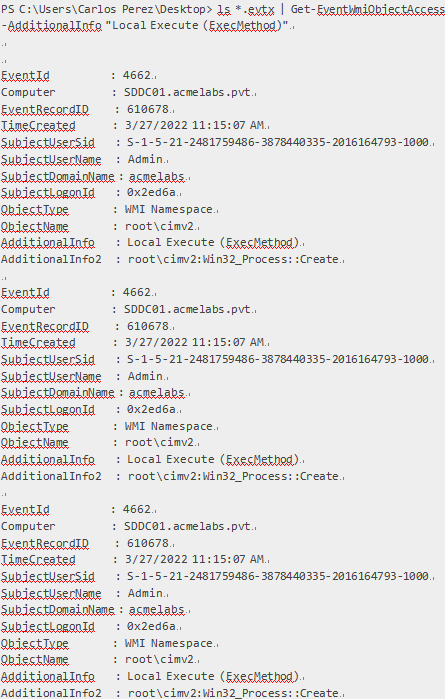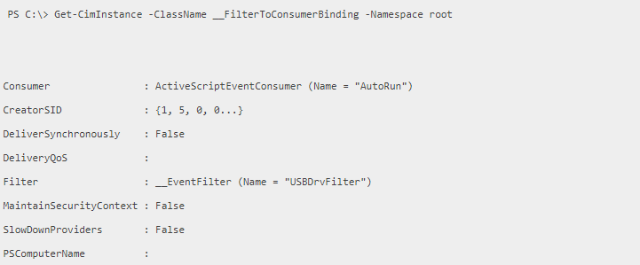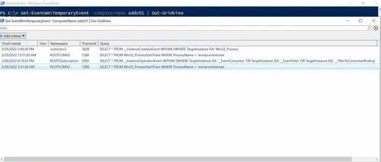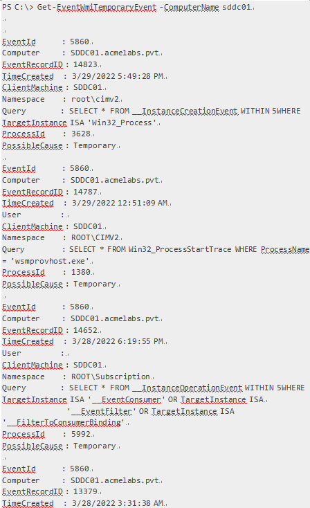 此事件可能会使用 Get- EventWmi Temporary Event 方法查询。 正如我们可以看到的那样, Windows 经常使用这种事件 。