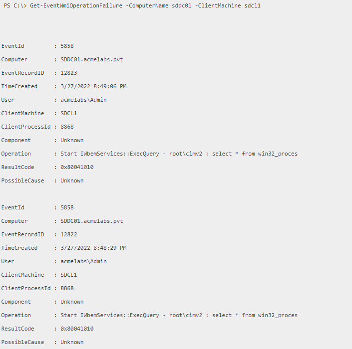 PSGumshoe 包括搜索和过滤错误日志的Get-Event WmiperodiveError方法。攻击者可能犯错误或无权进行导致记录错误的行动。届时将使用计算机和处理PID。不仅创造当地活动的进程,而且正在产生地方活动。它还为遥控制造事件。