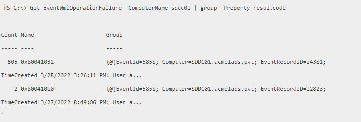 我们可以根据结果代码进行分类,结果代码是错误编号, 我们可以使用微软文档中的错误常量引用来查找任何相关信息。