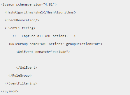 如果我们利用Sysmon 并设置它来赶上WMI事件,我们就可以使用它。将记录生成的每个组件Sysmon的好处是能够定位对现有约束过滤器或用户的修改。以便融合到环境中。我们观察了APT28中的用户和过滤器 用来改变目标环境下面的设置将涵盖所有事件。