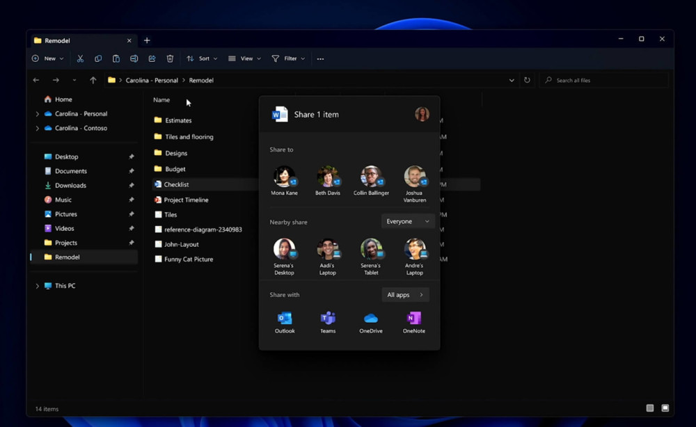 文件资源管理器正在获得一个新的功能,称为上下文菜单提案,当用户希望通过本地共享菜单共享文件时,将使用它来提议联系人。