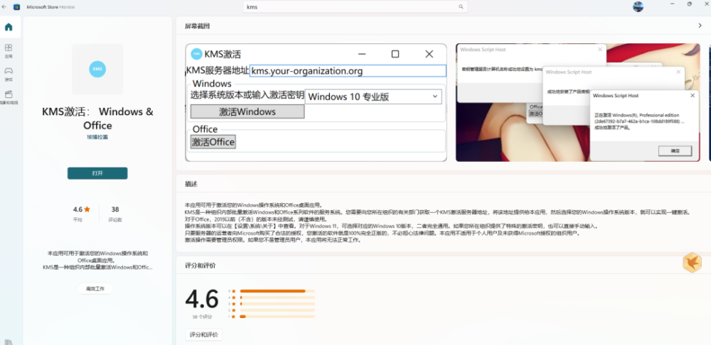 但是,最近对Ok酱进行了研究之后, 看来KMS激活工具 已经安装在微软商店上。