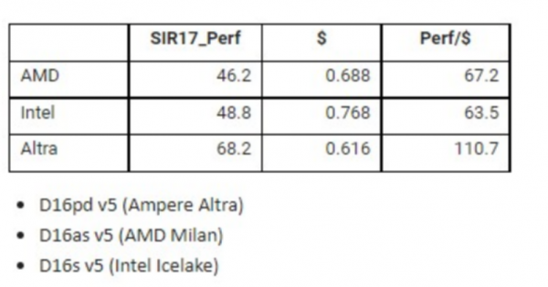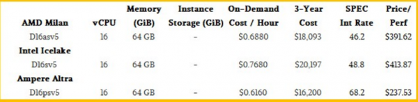 我们在此侧重于每单位业绩的成本,因为对业绩的需求通常很严格,而且显然需要多少业绩和多少成本。 为此,我们计算了三次三年期(无折扣)运行测试的Ampere Compre Compting: