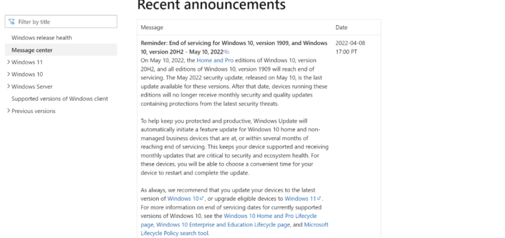 微软公司刚刚向仍在操作Windows 101909或20H2版本的消费者发出“讨论”警告。