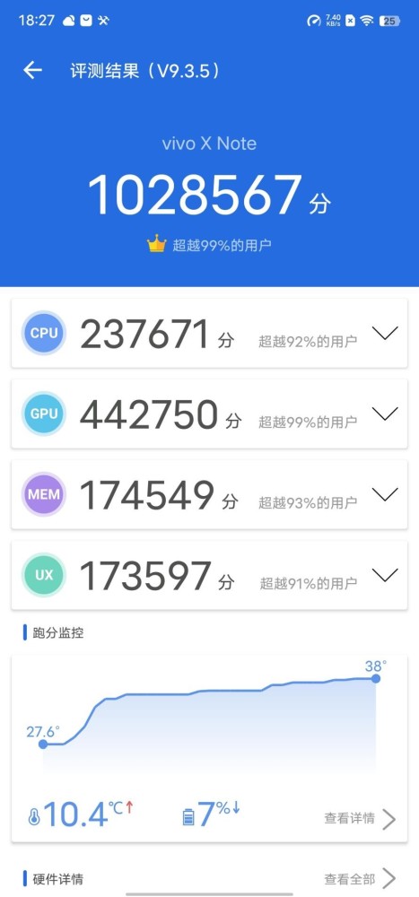 当然,这是《Vivo X Note》的基本发布。总的来说,《Vivo X Note》在最新版的兔子中得分为102万或更高,这表明它与业绩时间安排没有问题。