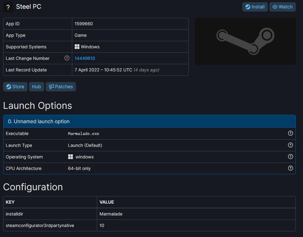 Steam的数据页,“Machine Risks”,最初于2021年10月以SteamDB的形式首次出现。当时页面上只有少量内容。但是,随着最新的升级,SteamDB网站载有关于操作系统(窗口)和处理器结构(64位)的信息。值得注意的是,蒸气数据库的名字不是"迈金冒险"它被称为"钢铁PC", 它被称为"钢铁PC"。很可能是一个代号