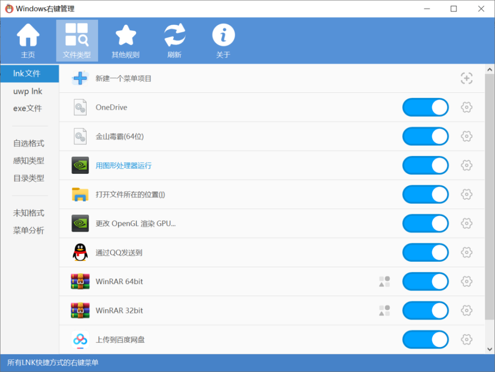 该软件还具有文件类型管理的右键功能,如墨文件、uwp Ink、Exe文件、文本文件、图片文件、视频文件、音频文件、图像目录、视频目录、音频目录、未知格式和可选格式,视文件类型而定。