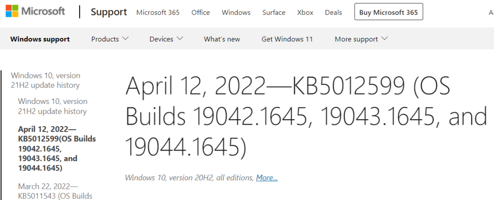 微软公司公布了Windows 10 KB 5012599和KB 5012591的累积更新,与21H2、21H1、20H2和1909版本有关,以堵塞安全漏洞和解决错误。