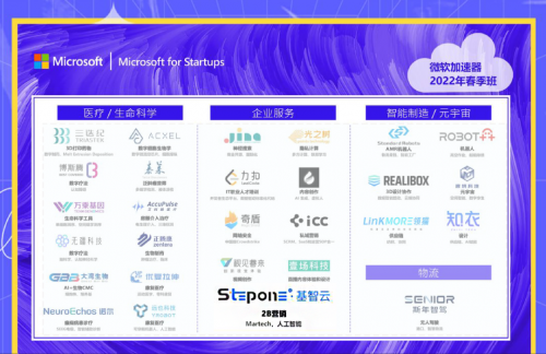本届2022年春季会议经过多轮审查和由微软工业领导人、风险资本伙伴和外部工业专家组成的重要陪审团。共28家企业入选。公司在医疗、工业、娱乐和跨行业商业服务部门提供服务。其中三分之二的企业的资金总额超过1亿元。价值超过三百亿元