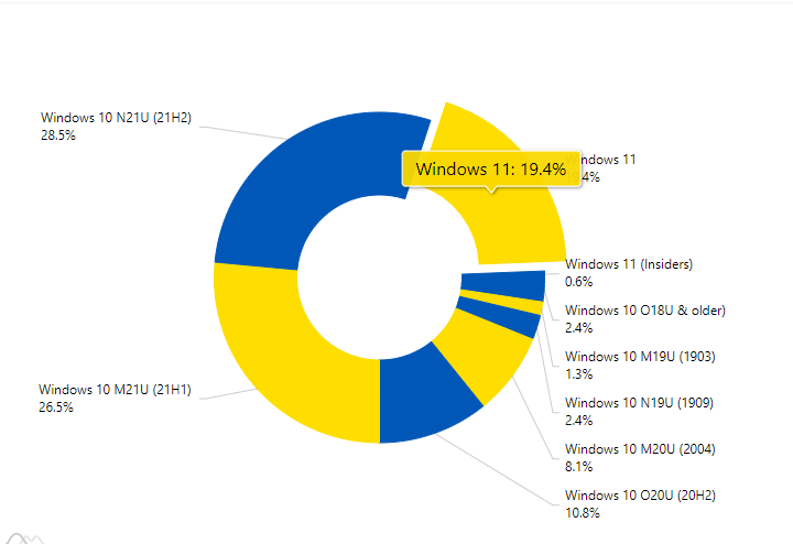 值得一提的是,AdduPlex提供以下信息:Windows 11是去19路的4%为什么这两个数字之间有如此大的差距?我们暂无法得知。不过,从LandsSweeper获得的数据向商业用户倾斜。不幸的是,商业用户很难跟上最新消息。还有一个有长期支持的版本。