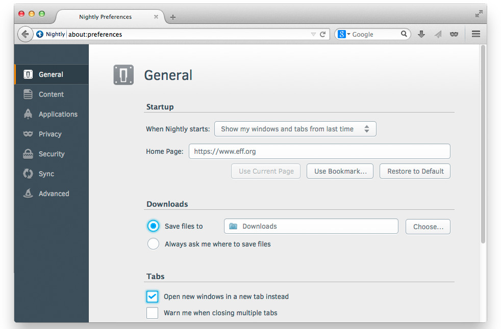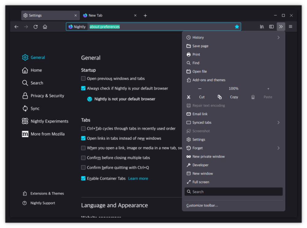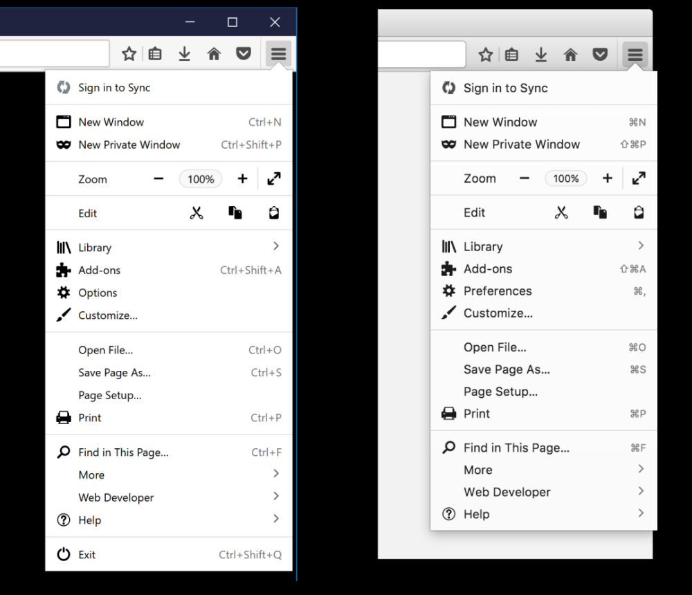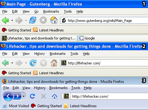 此外,不同版本的Firefox使用不同的彩色按钮:标准版本(Orange)、私人模式(紫色)和Nightly版本(蓝色):