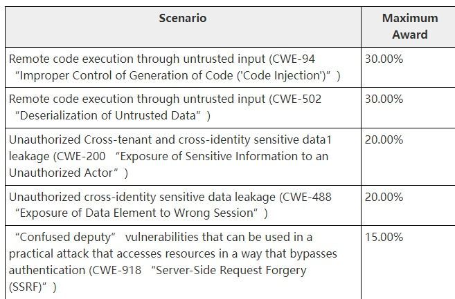 微软在 20000 美元漏洞赏金的基础上再提供额外30% 的奖金