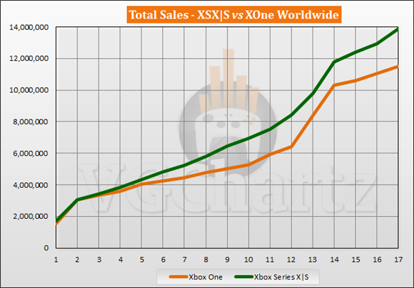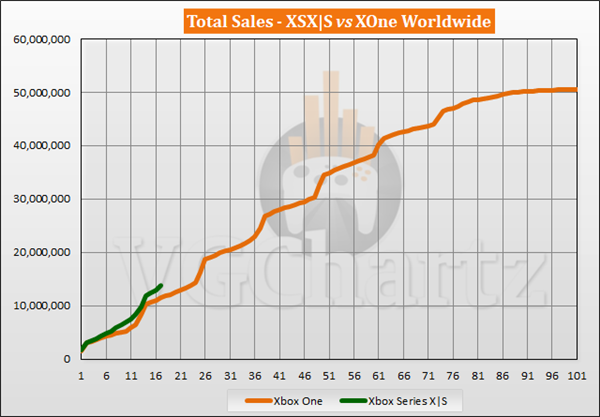 根据VGChartz主机销售数据,微软XSX/S主机自成立(第17个月)以来,截至今年3月,在全世界共销售138 67499美元。
