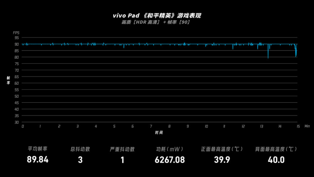 然而,对业绩的需求更大:和平精英每秒需要90个框架。平均框架率为每秒89.84个框架。奔跑在大约90英尺,这也是框架汇率变化的一条直线。不过在游戏的后程,框架汇率又发生一次剧烈摇晃。和两个更小的框架颤抖。至于发热,其背面同样能够承受高达40摄氏度的温度。