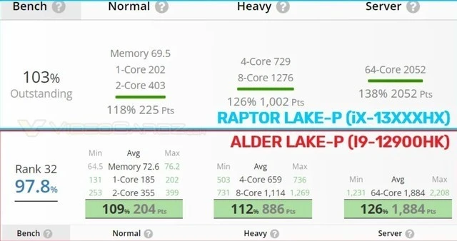 目前,尚不清楚英特尔公司是否打算扩大其移动系列中的内核数量。另一方面,台式平台提高了(加倍)高效内核内核的数量。更重要的是,根据用户基准收集的信息,这个处理器已经比它的前身Alder Lake-P CPU更快了。