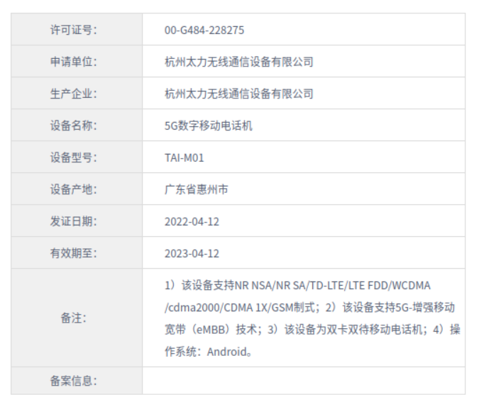 本周,工业和通信部在网上认证了杭州泰威通信有限公司5G新TAI-M01号,部分规格已经披露。 Hua可能选择了Hi Mate型设备。
