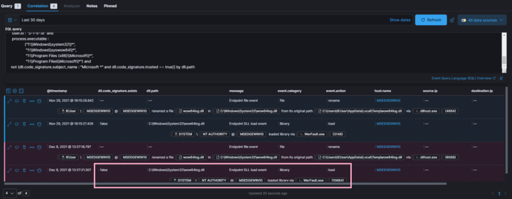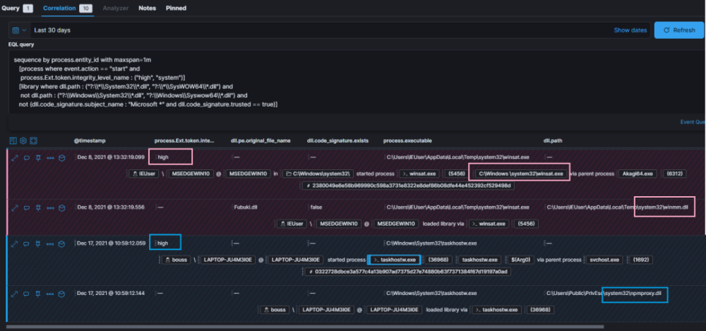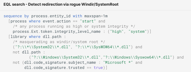 以下EQL示例展示了如何在伪装成系统32的目录中识别DLDD的装载(即由于Windows/Systeroot环境变量的变化):