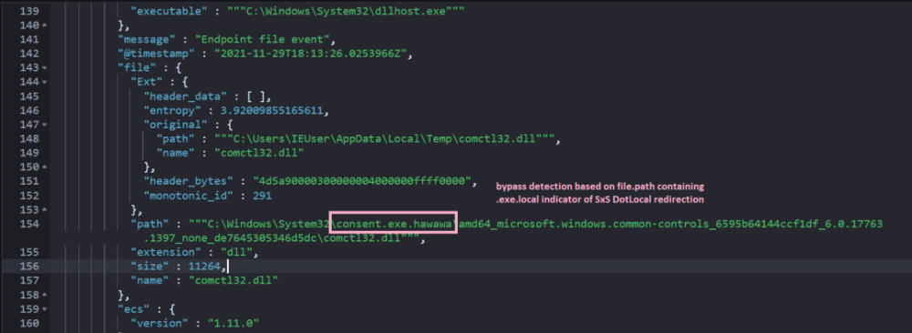 此查询与 UACME 方法 22 相对应, 该方法针对调子( 运行为系统), 并欺骗它从 SxS Dot 本地目录装入 compl32 。 Doll 而不是 System32 :