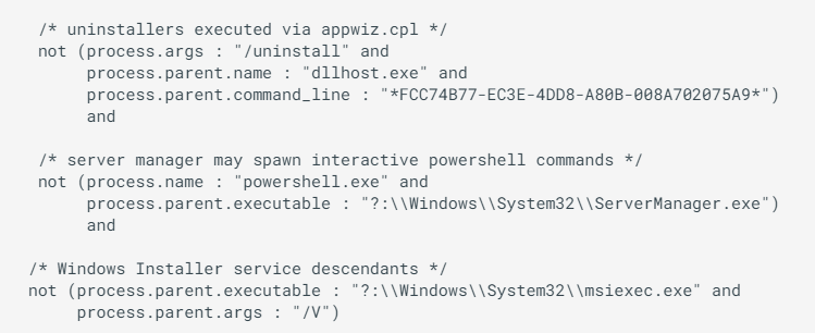 上述查询还匹配了后代所有UAC进程,而不仅仅是直接次进程。