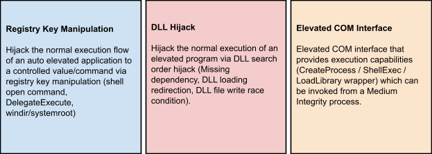 值得指出的是,大多数避免UAC的以DLL为基地的绑架也有利于持久,并可能避免自动操作测试(已知档案和登记表格的永久位置)。