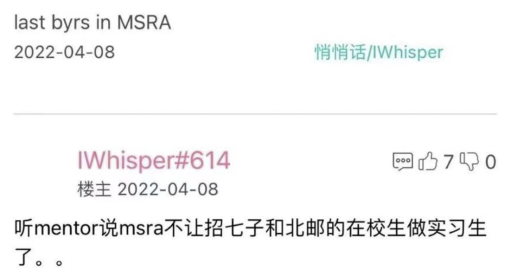 微软亚洲研究所 -MSRA 暂停 国防七和北方邮报学生?