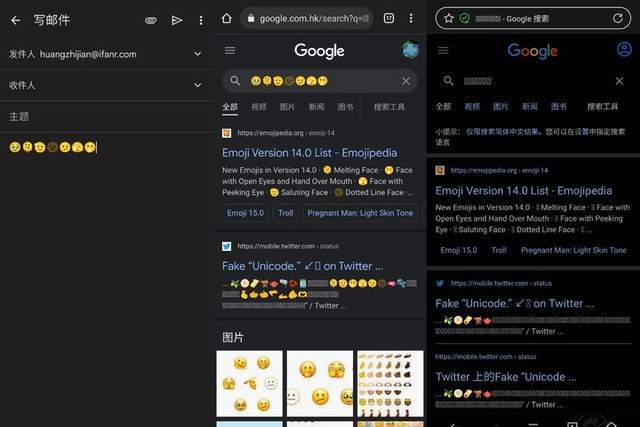 Gmail 在左边, Chhome 在右边( 不支持 Emoji2) 。