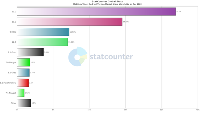 据Statfighter指出, Android 12智能手机的数量目前仅占总数的11%, 不到五年内释放的Android 9装置的数量。 由Flickr用户Pic.