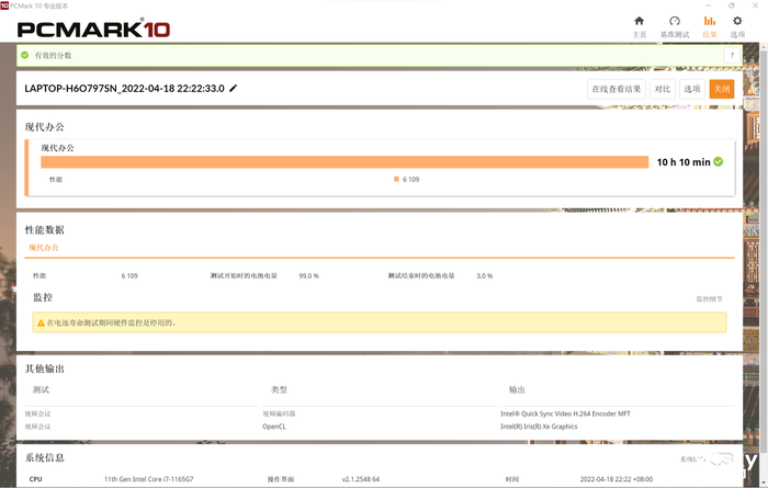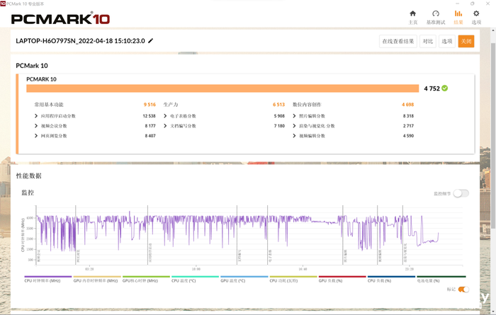 为了在实际办公工作中复制使用者的状况,我们使用PC Mark 10软件。这导致在办公室软件、视像会议、页面访问等任务面前设备性能的提高。在办公基准测试中,年终中国从MateBook B7-410获得4752点。它的生产率评级为6531。照片编辑分数:8318。