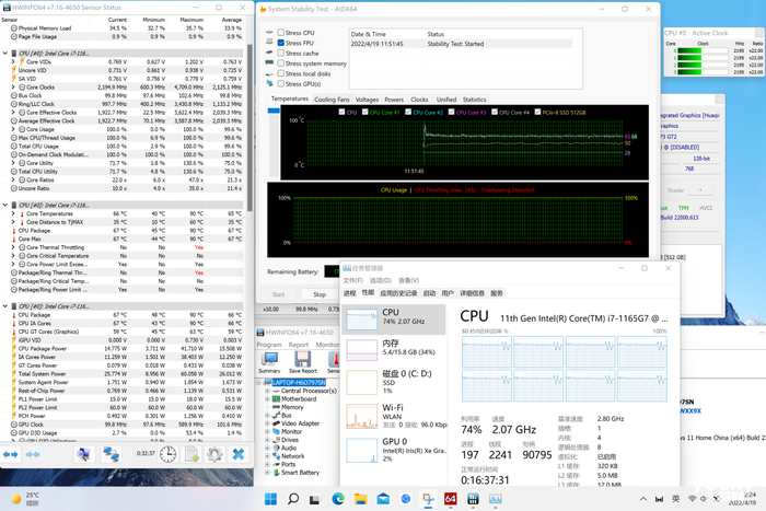 根据CPU-Z运行得分:i7-1165G7已被i7-1065G7单核和多核取代。多核性能的改善尤其明显。在CPU-Z的完成率方面,MateBook B7-410上的i7-1165G7处理器可能与i7-11800H完全相同。多核成就与i7-1370H类似。
