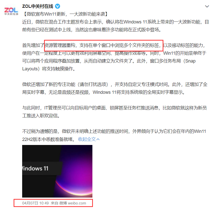 不足为奇的是,微软公司释放了仍然缺少许多资源管理标签的Windows 11。